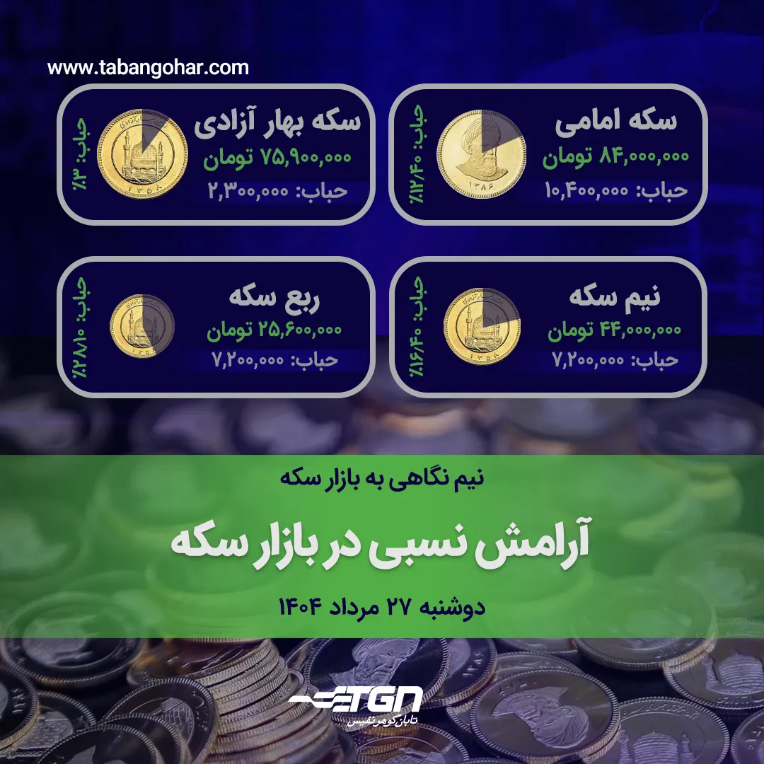 نوسان جزیی قیمت دلار بازار آزاد در هفت روز گذشته و ماندگار انس طلا در کانال 3300 دلاری باعث آرامش نسبی بازار سکه شده است به طوری که در لحظه نگارش این خبر سکه امامی با قیمت 84 میلیون تومان معامله میشود.