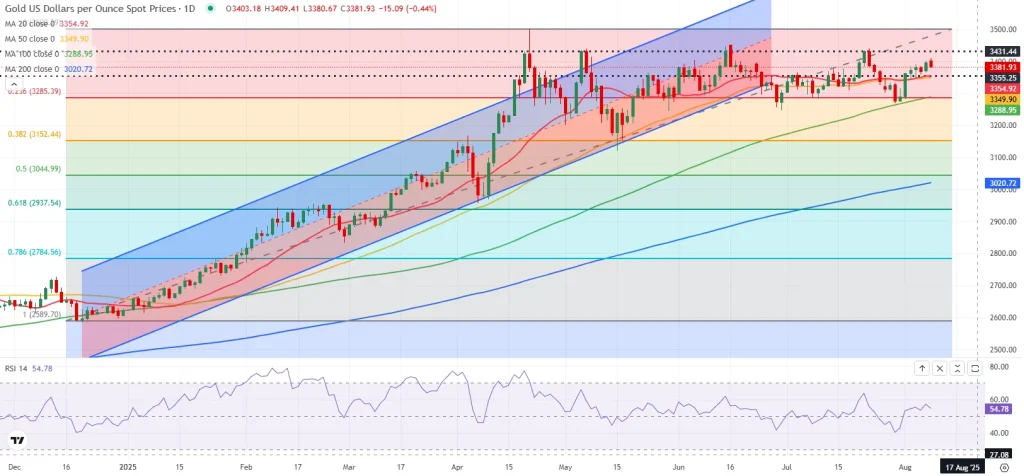 تحلیلهای تکنیکال نشان میدهند، شاخص قدرت نسبی (RSI) در نمودار روزانه همچنان بالاتر از سطح ۵۰ قرار دارد و قیمت طلا بالای محدوده ۳۳۵۵ دلار، جایی که میانگینهای متحرک ۲۰ و ۵۰ روزه همگرایی دارند، در حال معامله است. این وضعیت بیانگر غلبه نسبی خریداران بر بازار است، هرچند مومنتوم صعودی محدود به نظر میرسد.